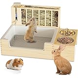 $14.99 (as of 02/08/2026 14:07 GMT +00:00 - More infoProduct prices and availability are accurate as of the date/time indicated and are subject to change. Any price and availability information displayed on [relevant Amazon Site(s), as applicable] at the time of purchase will apply to the purchase of this product.)Chloraeon 4-in-1 Waterproof Wooden Rabbit Litter Box with Hay Feeder, 2 Food Bowls, and Water Bottle | Large Capacity, Waste-Preventing Design for Rabbits, Guinea Pigs, Chinchillas, and Small Animals